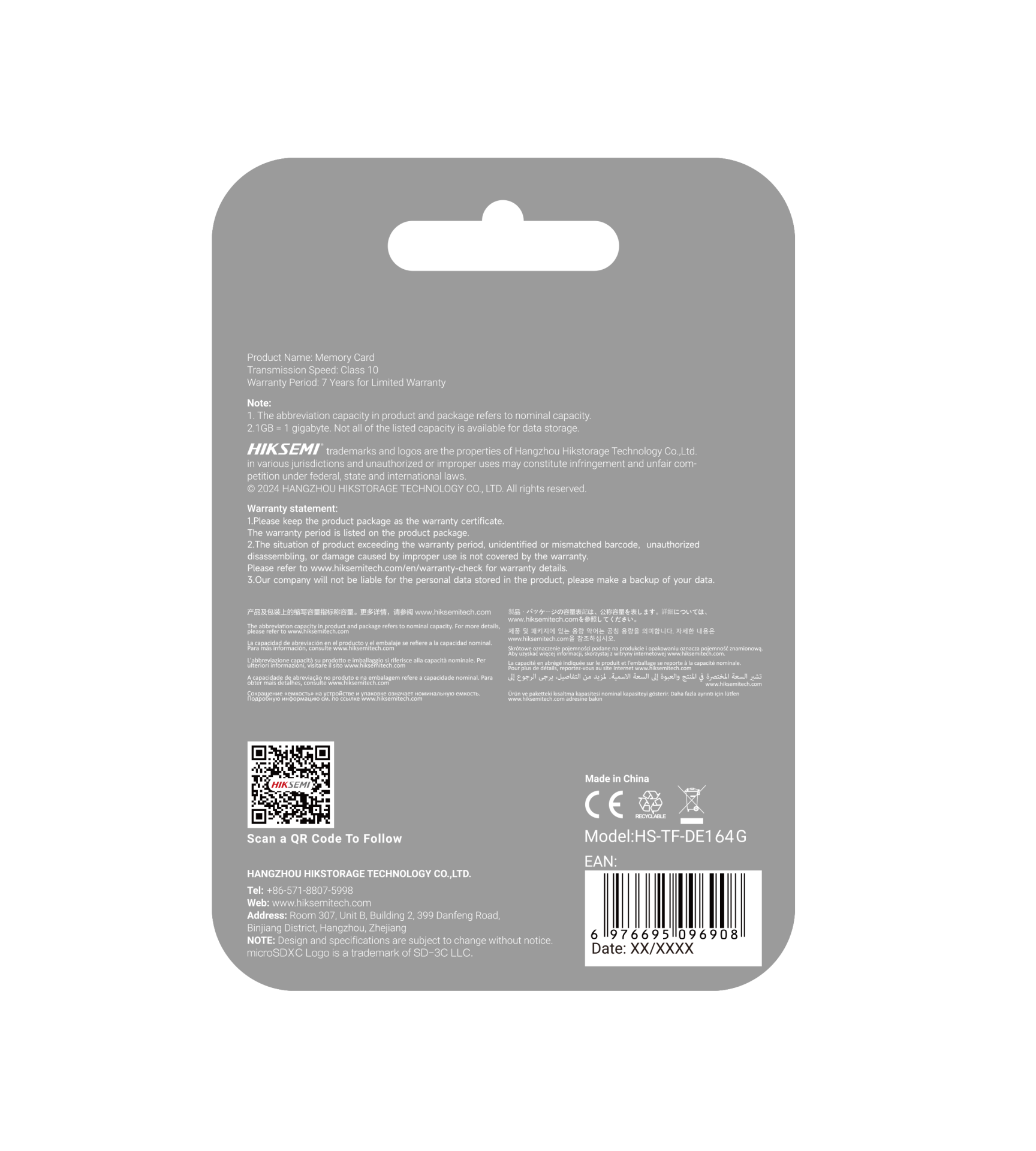 CARTÃO DE MEMÓRIA MICRO SD HIKSEMI HS-TF-DE1 64G