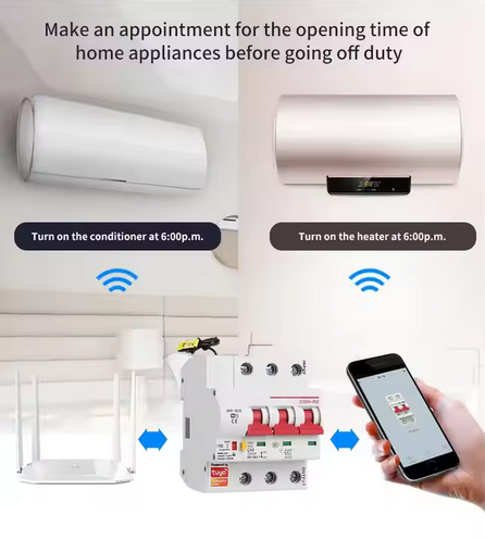 Disjuntor 3P SCB03 Smart Tuya Wifi 1-63 amperes ajustável por télemovel com duas antenas.