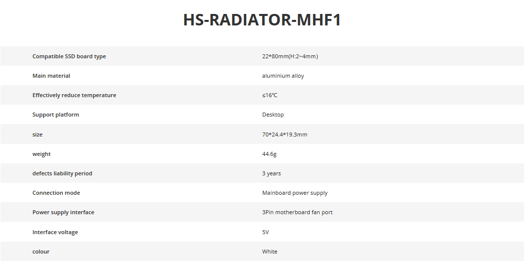 Home Dissipadores SSD Dissipador M.2 SSD Hiksemi MHR1 Dissipador M.2 SSD Hiksemi MHR1 39,99 € Desconto de %. IVA incluído. Comprar Contactar Características: Modelo: HS-RADIATOR-MHR1 Compatibilidade 22*80mm(H:2~4mm? Redução efetiva de temperatura «16 graus celsius. Potência: 1.8w Tipo de conecção: 3 pinos Tipo de alimentação; Ficha ventiladores motherboard. Tensão: 5V Cor: Branco com luzes led Dimensões : 70*24.4*19.3mm Peso : 44.8g Garantia defeitos de fabrico : 3 years Ecotaxa Incluida no preço. Marca HIKSEMI Tags HIKSEMIM.2NVMe CoolerMHR1DissipadorDissipador HIKSEMI SSD Características Partilhar Download Download ficheiro