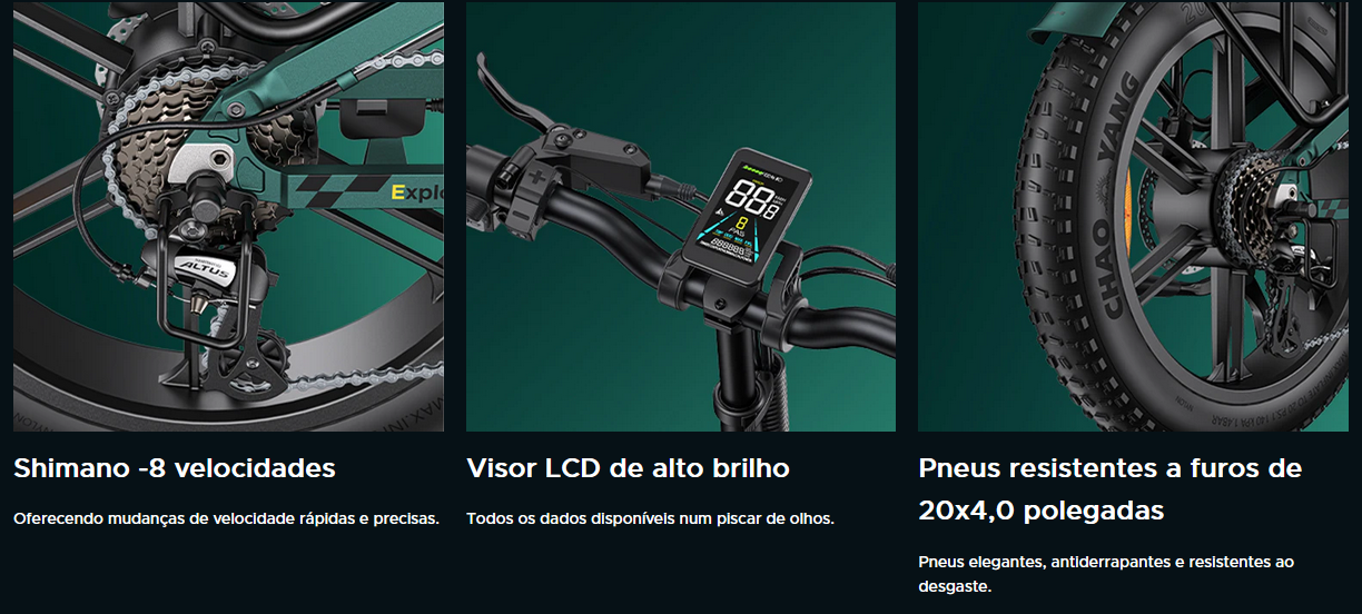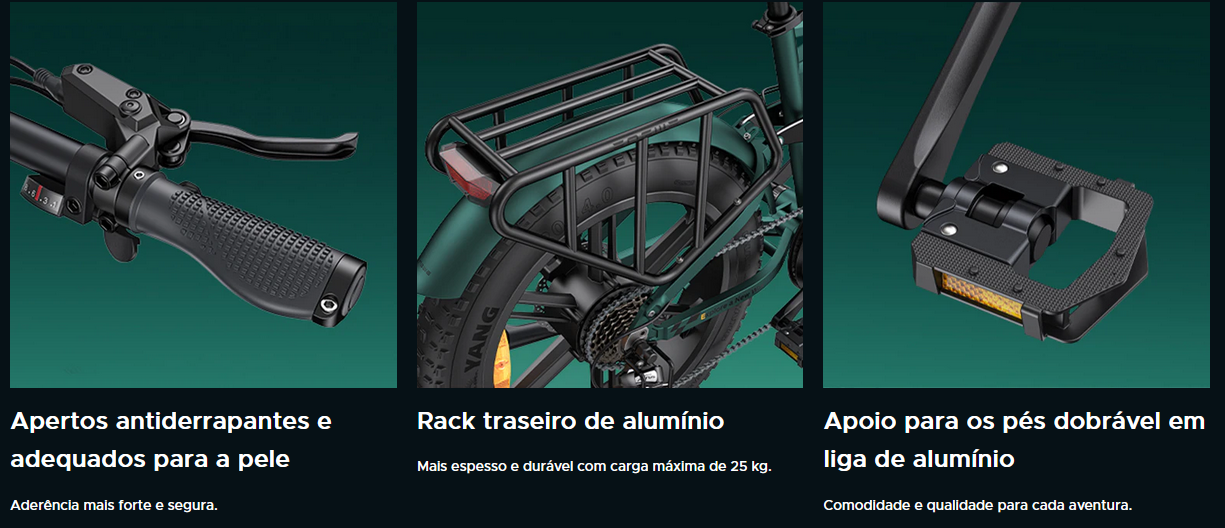 Pneus: Pneus 20x4,0" Ângulo máximo de subida: 10°