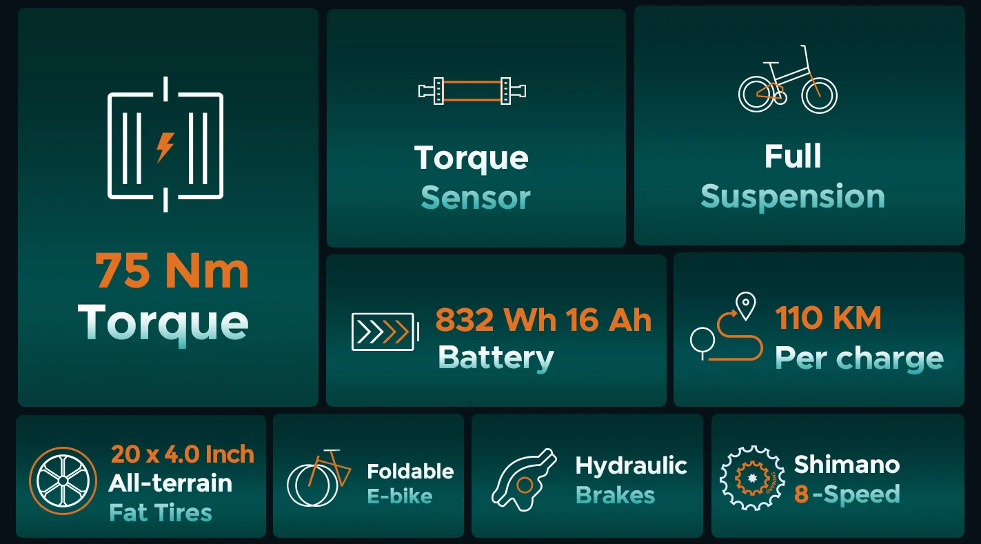 Bicicleta elétrica ENGWE Engine Pro 2.0. E-bike dobrável de aventura ao ar livre de alto torque de 75Nm