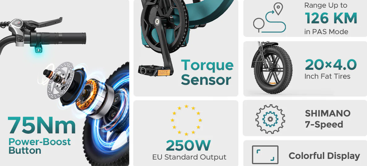 Binário máximo: 75 Nm – ideal para subidas e arranques suaves.