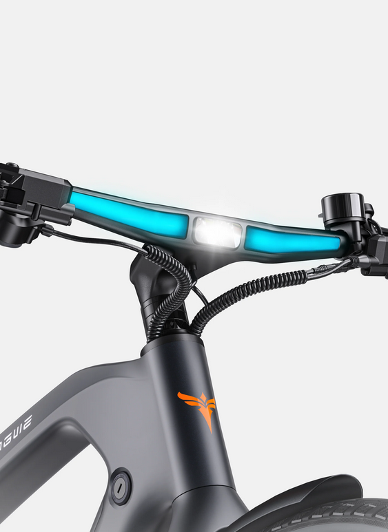 Material e Peso Quadro: Fibra de carbono (leve e resistente) Peso da bicicleta (com bateria): 19 kg (±3–5%) Peso bruto (incluindo embalagem): 28,6 kg
