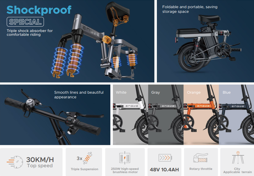 Bicicleta Elétrica Dobrável ENGWE T14 250W 55 km Alcance Máximo. Velocidade Máxima 25 km/h.